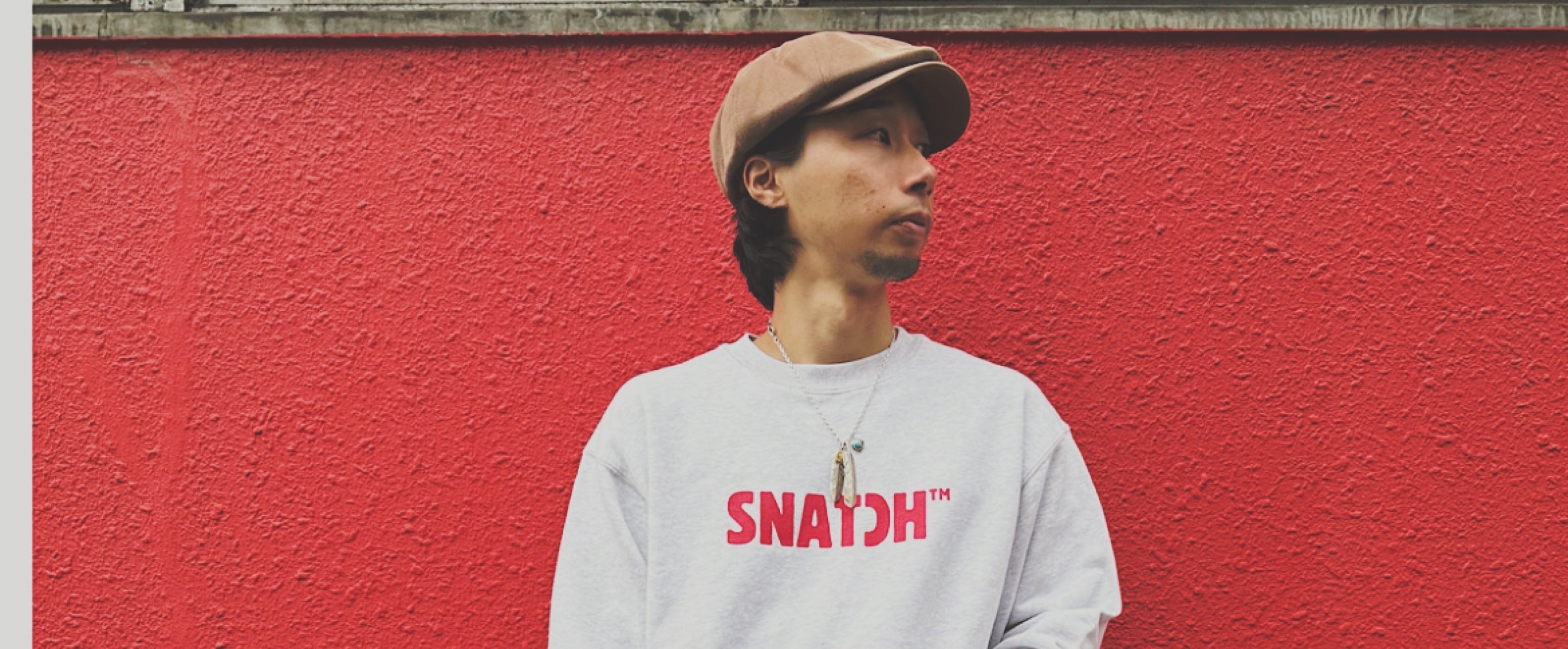 SNATCH” BASIC LOGO SWEAT CREW NECK. ASH×RED