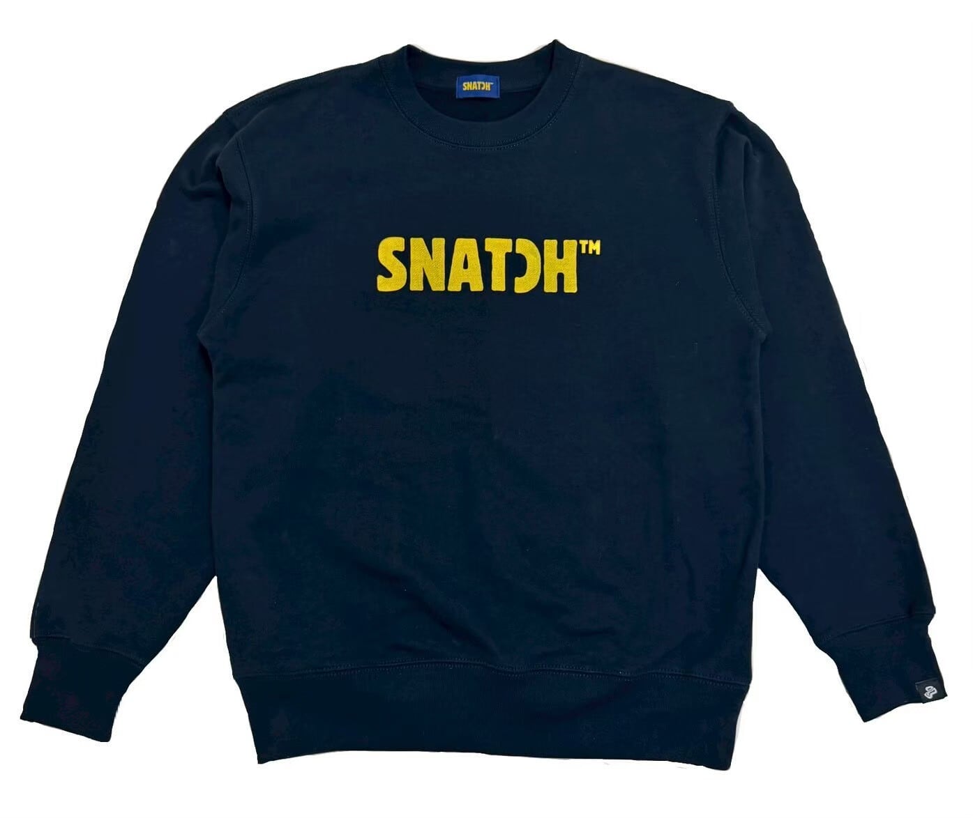 SNATCH” BASIC LOGO SWEAT CREW NECK. NAVY×YELLOW